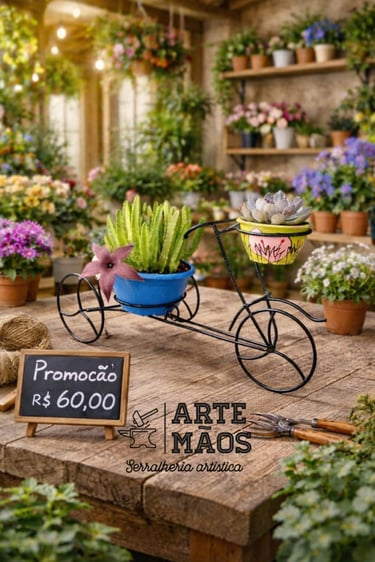 Peças únicas em ferro, feitas com cuidado e paixão para decorar seu espaço com charme e personalidade. Nossas peças são criações exclusivas, não fazemos reproduções sob encomenda, respeitamos a criação e dedicação dos outros artesãos.